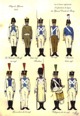 Mientras el VII cuerpo de ejército estaba asediando Gerona, desde mediados de abril, encontramos a los soldados de Berg -perteneciendo a la Brigada Amey- con los sitiadores. Esta brigada consistía en ese momento en el 1er y 2º Regimiento Berg, alrededor de unos 3.000 hombres, el 1er regimiento de Wurzburgo, unos 1.500 hombres y el Batallón de Príncipes de Wurzburgo, unos 850 hombres.