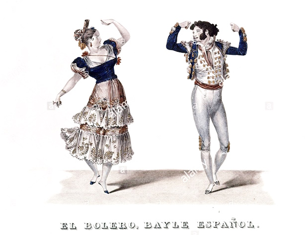 3Como señala Elvira Carrión Martín: «El nacimiento, progreso y establecimiento del Bolero en la sociedad del siglo XVIII supuso un cambio radical para el baile en el país, marcó una nueva identidad, y de este emergería un nuevo estilo de baile, particular de España pero que fue expandido y puesto también de moda en otros países, estilo considerado actualmente como la Escuela Clásica de la Danza de España y llamado, a partir del siglo XX, Escuela Bolera. [2]