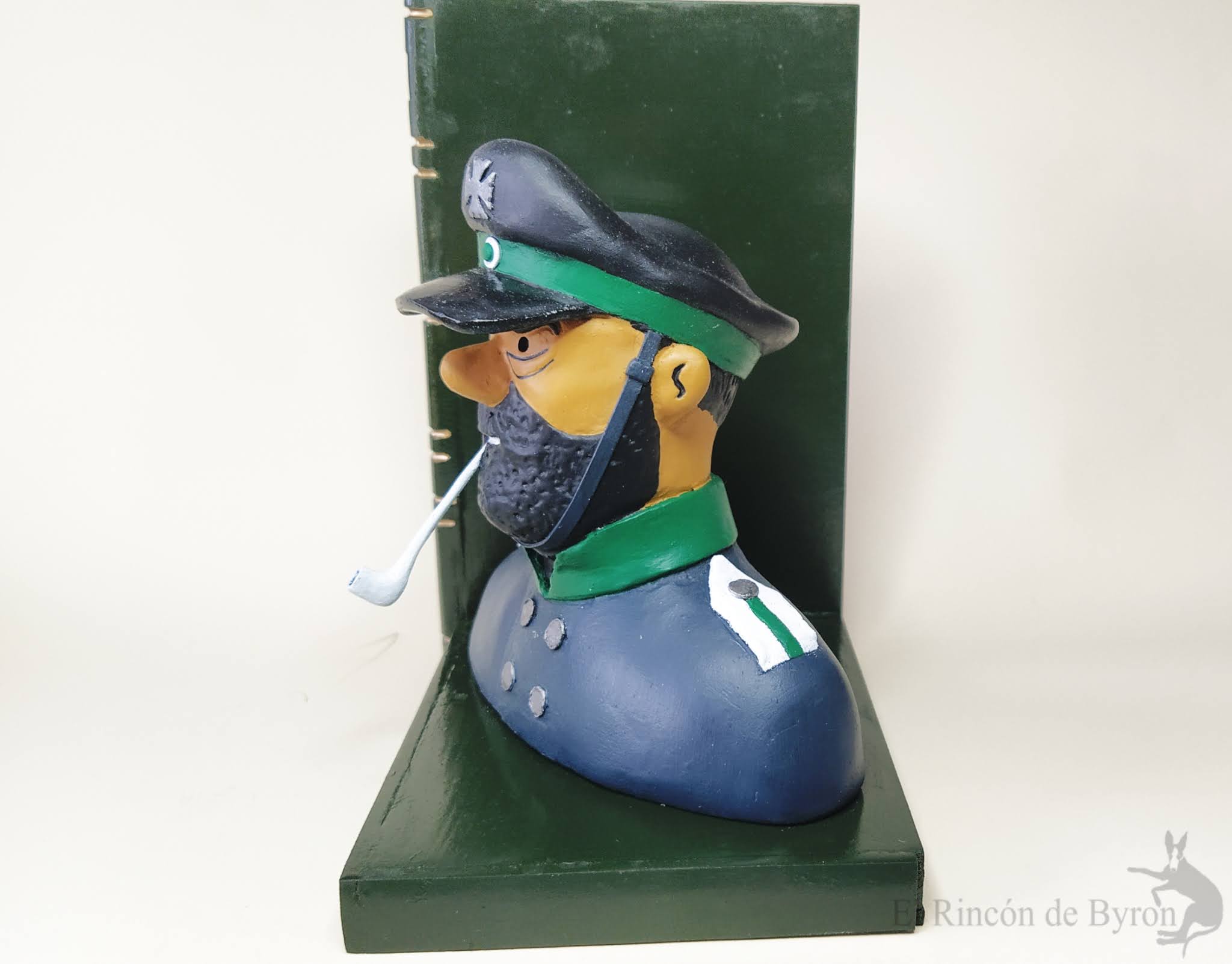 Evocando dichos elementos, y aprovechando una promoción en una tienda de artículos de Bellas Artes, adquirí una par de bustos de figuras de Tintín y el capitán Haddock, basados en los populares personajes del dibujante belga Hergé. Como sucede en las familias, de pequeño tuve la suerte que unos primos tenían casi toda la colección de las aventuras de Tintín (uno era más de Mortadelo y Filemón), y cuando ibamos de visita me pasaba el rato leyendo las viñetas de \»El cetro de Ottokar\», \»La isla negra\» u \»Objetivo: la Luna\», entre otros títulos, que visto en retrospectiva considero que fue una suerte en una época bien distante a la de todos los artilugios tecnológicos que nos impone la sociedad actual.