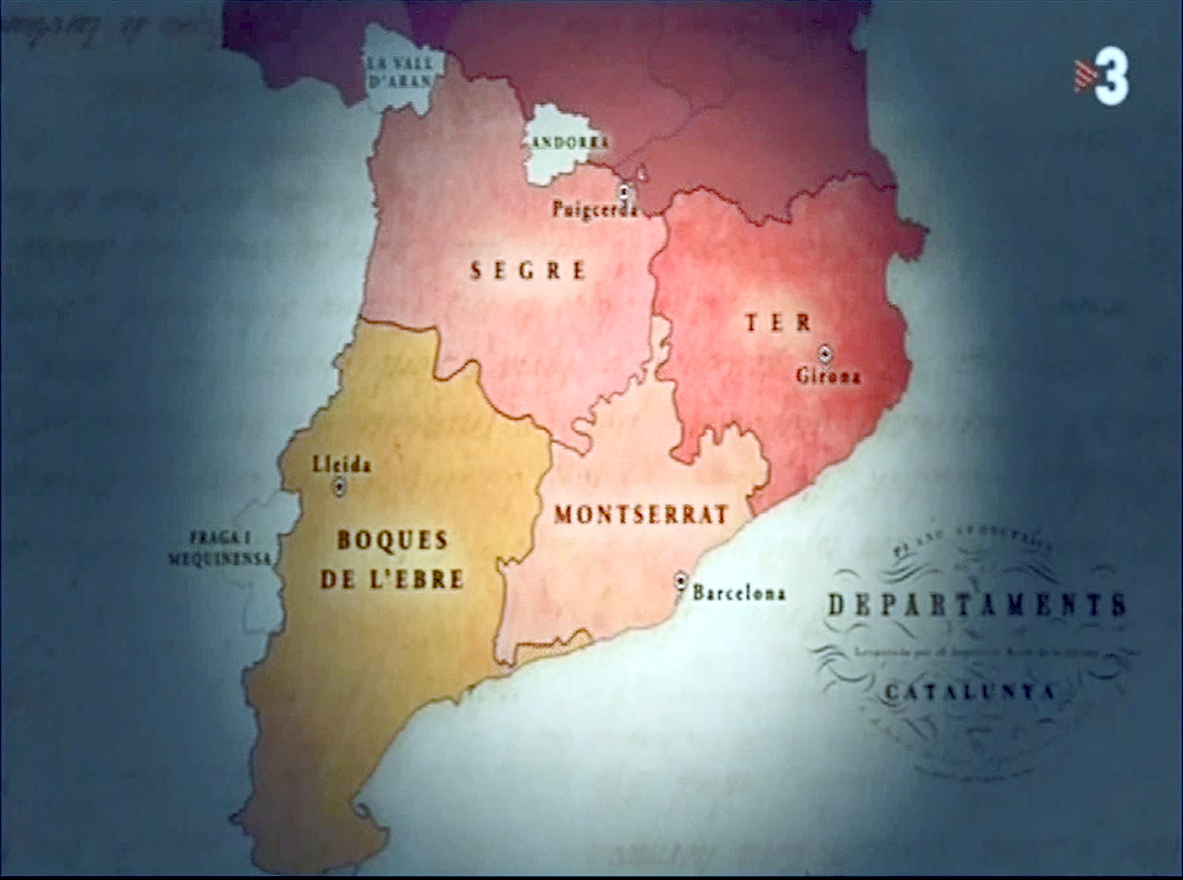Cataluña queda dividida en departamentos como Francia. Son cuatro: los del Segre, el Ter, las Bocas del Ebro y Montserrat. Andorra se integra en el departamento del Segre, mientras que el Valle de arán depende ahora de la Alta Garona francesa, una parte de la franja de Poniente, Mequinenza, Fraga y Nonaspe se incorpora al departamento de Bocas del Ebro.