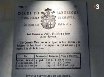 Narr.: Los franceses hicieron oficial el catalán y publicaron en catalán y francés el Diario de Barcelona y la Gaceta de Gerona. También las actas del Ayuntamiento de Barcelona se redactaron en catalán. Desde el Decreto de Nueva Planta, el catalán había desaparecido de la enseñanza, de las publicaciones y del lenguaje oficial.