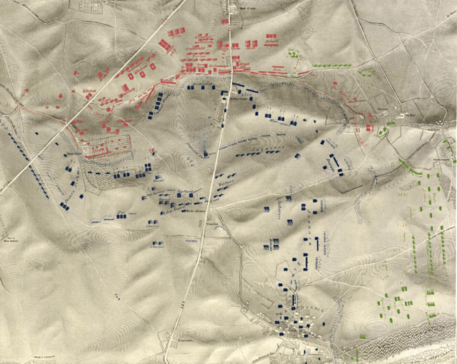 | Mapa de William Siborne del campo de batalla mostrando la disposición de las tropas a las 11.15 horas. (b) |