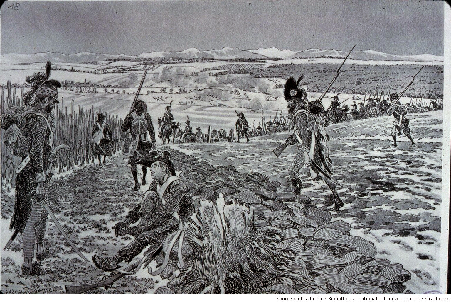 \»Batalla de Wœrth-Frœschwiller, 22 de diciembre de 1793, el ejército francés, comandado por Hoche, se apodera de Frœschwiller\» (m) |