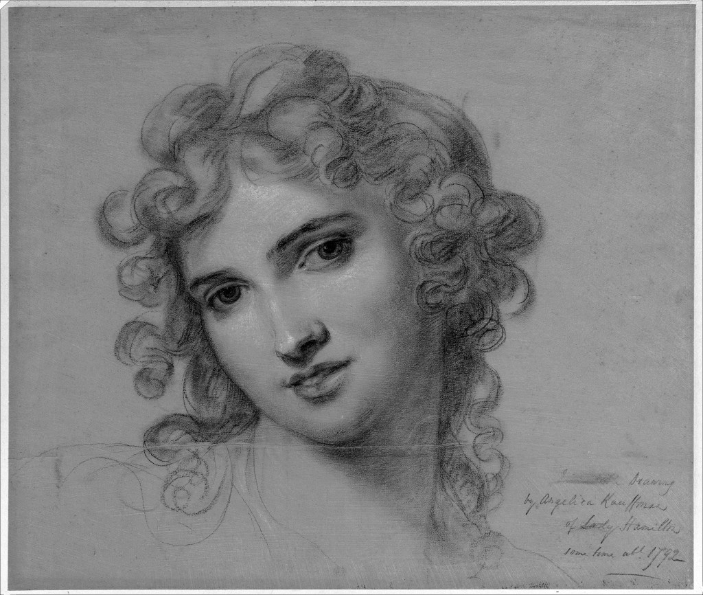 1786 – A principios de año, Emma en compañía de su madre y bajo la escolta del pintor Gavin Hamilton, pariente de Sir William, partieron para la ciudad de Nápoles, a la que llegaron el día de su cumpleaños, el 26 de abril de ese año. Pronto Emma se dio cuenta de la realidad de su posición y escribió a Greville varias veces. Greville siempre contestaba con evasivas. Pero pronto su belleza no pasó desapercibida en los círculos de la corte ni en la sociedad de Nápoles. Sir William Hamilton fue más que leal a su promesa de darle a su amante el mejor entrenamiento para su voz que Italia pudiera ofrecer por lo que, con sus lecciones de canto, su trabajo como modelo para los artistas contratados por Sir William, y la ronda diaria de alegres fiestas sociales, los días de Emma estaban completamente ocupado. La casa del embajador en Caserta era un desfile continuo de pintores, escultores y esmaltadores.