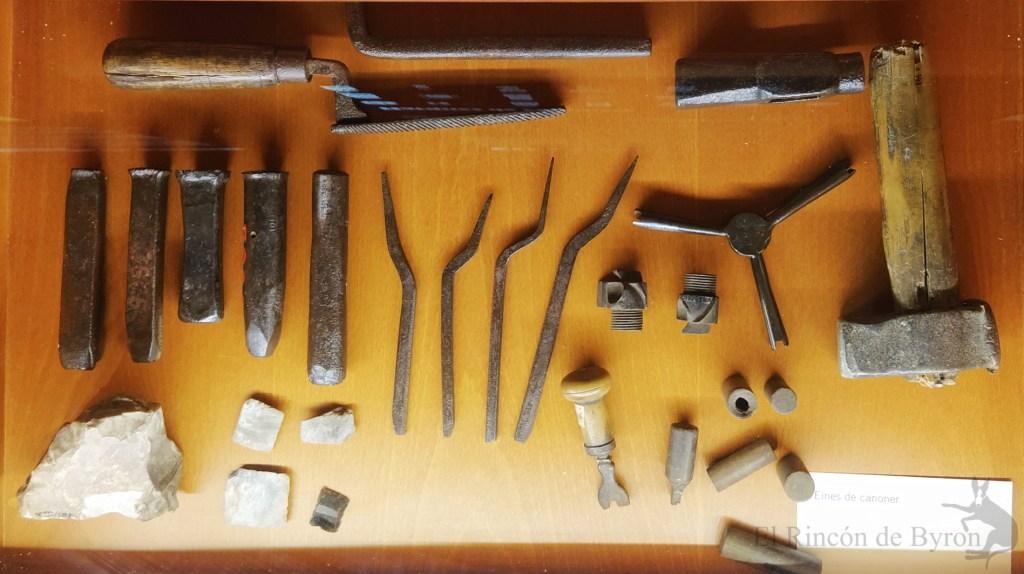 Los cañoneros trabajaban las barras aplanadas de hierro compactado que salían de las fraguas hasta convertirlas en cañones de armas de fuego. Esta era la parte más cara del arma, por la dificultad del trabajo, y la de más compromiso, por el peligro que representaba cualquier defecto que se produjera. Lo que hacía singulares los cañones ripolleses era la técnica de fabricación: se curvaba una banda de plancha de hierro de entre tres y siete centímetros de anchura y se soldaba en forma de espiral. Este proceso, que exigía habilidad en la forja, les confería una gran resistencia a la presión interior y evitaba que estallaran. Además, cada cañón tenía que pasar una prueba obligatoria, que consistía en disparar con doble o triple carga de pólvora y plomo. Así, o bien se destruía o bien quedaba aprobado; entonces el cañonero lo punzaba con su nombre, lo pulía y ocasionalmente acababa el exterior con estriados y grabados al buril, y finalmente lo pavonaba (le daba una capa superficial de óxido abrillantado para mejorar su aspecto y evitar su corrosión) de color negro, azulado o tabaco. A partir de la segunda mitad del siglo XVIII lo podía decorar también con incrustaciones de metales preciosos.