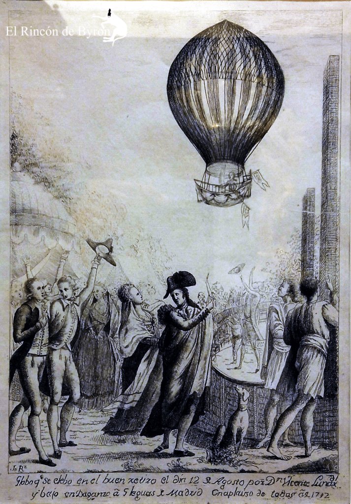 En 1783, y ante Carlos III, Agustín de Bethancourt realizó la primera ascensión de un globo en España. Pero el primer vuelo tripulado se celebró en Aranjuez en 1792 con los italianos Barletty y Braschi. No obstante las ascensiones más populares fueron con globos de gas y tuvieron como protagonista a Vicenzo Lunardi.2