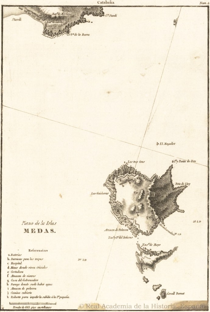 1 – «Las fortificaciones en las Islas Medas» – Jaime Pumarola, Revista de Girona, nº 12, 1960, pp. 36-37