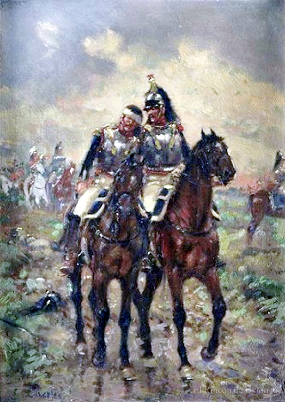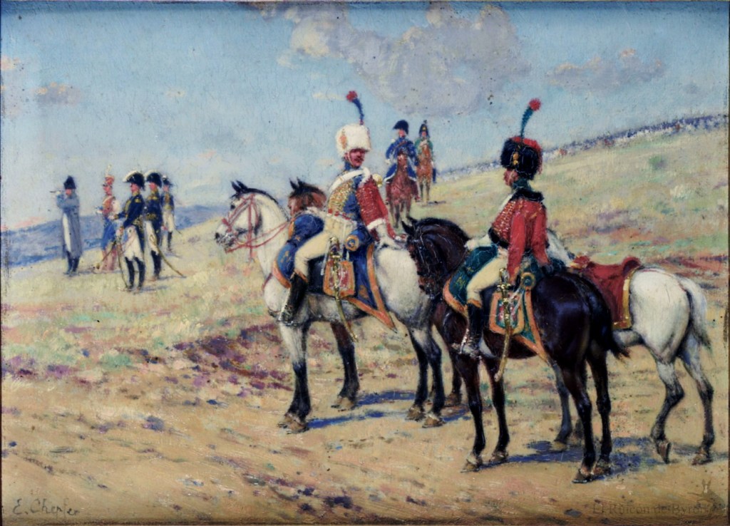 deux chasseurs à cheval de la Garde», óleo sobre lienzo, 23 x 33 cm (p)