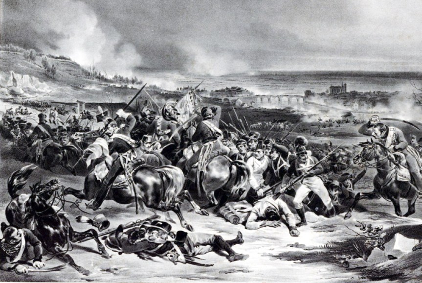 Esta semana volvemos al terreno de los óleos y pinceles dedicados a la época napoleónica de la mano del pintor y militar francés, Jean-Charles Langlois. Alistado en 1806, el artista participó en las guerras napoleónicas y posteriormente en las expediciones militares francesas en España y Argel. Langlois se preocupará de pintar en los campos de batalla a los soldados al mismo nivel que sus comandantes, implicados todos en el marasmo de la lucha, sin entrar en la vertiente más propagandística de otros pintores franceses de batallas del Primer Imperio.