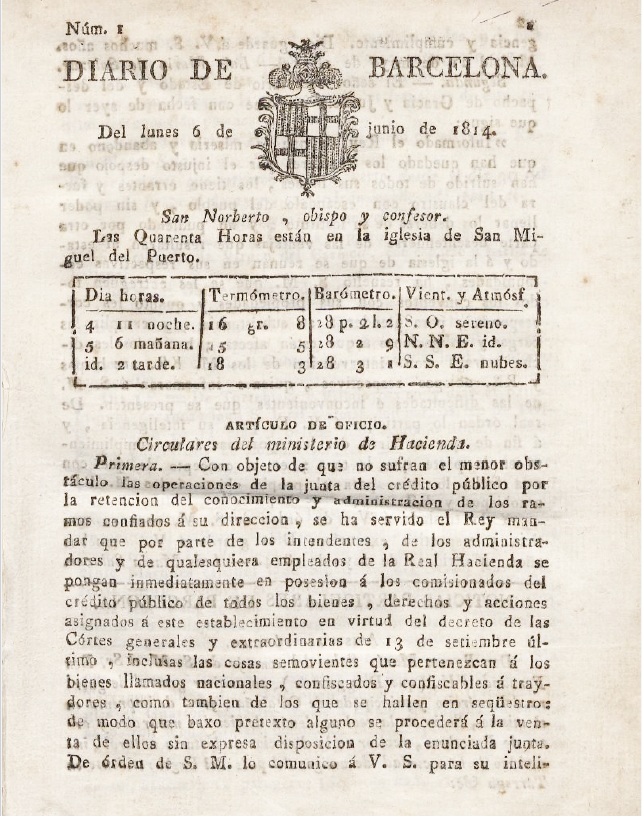 1 – «Cataluña y los inicios de la prensa periódica en España» – Jaume Guillamet, UPF (Barcelona), 2021, pp. 51-66,