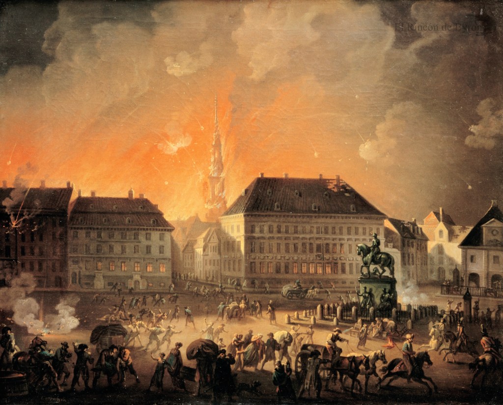 «La nuit la plus terrible». Vue de Kongens Nytorv à Copenhague pendant le bombardement anglais de Copenhague la nuit du 4 au 5 septembre 1807. (c)