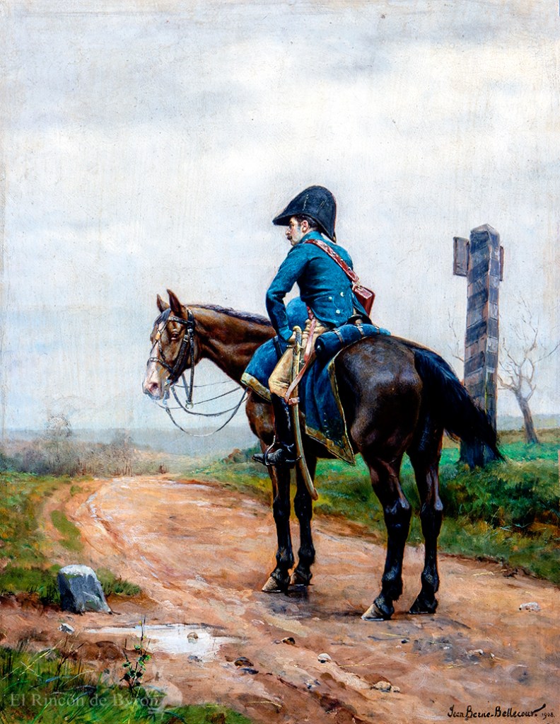 Jean-Jacques Berne-Bellecour es otro de los nombres de artistas que crecieron bajo la influencia de Edouard Detaille, Gérôme o Meissonier, a caballo entre los siglos XIX y XX y que dedicaron una parte de su obra a los soldados y escenas de la época napoleónica. Su padre y primer maestro, el pintor Etienne Prosper Berne-Bellecour, retrató a los soldados de la guerra Franco-Prusiana de 1870, en la que participó como soldado. Su hijo, al mismo tiempo también fue un pintor (al igual que otros ejemplos tratados en nuestro blog) que participó en la Primera Guerra Mundial, en el frente del Marne, siendo nombrado pintor oficial del Ministerio de la Guerra y del Museo del Ejército, pudiendo recorrer las líneas del frente y realizando inumerables esbozos y pinturas de los soldados que luchaban en primera línea del frente, tanto franceses como luego británicos. Como muchos artistas del pasado de la escuela francesa de principios del XX, su nombre no es muy conocido por el gran público por lo que esta semana os traemos una breve retrospectiva de su vida y obra.