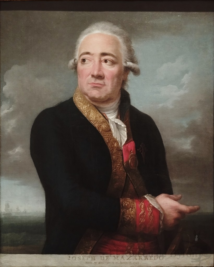 Como teniente general, José de Mazarredo se esforzó por corregir el abandono en el que se encontraba la Armada, demostrados años después en las batallas del cabo de San Vicente y Trafalgar. En el ámbito científico impuso el método de las distancias lunares para resolver el problema del cálculo de la longitud. Esta obra fue pintada en Paris por el retratista del gobierno francés durante su estancia allí.