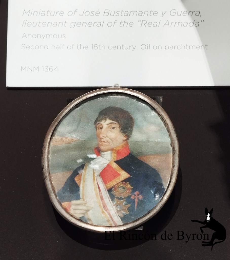 Derecha: Miniatura de José Bustamante y Guerra, teniente general de la Armada. Anónimo. Segunda mitad del siglo XVIII. Óleo sobre pergamino.