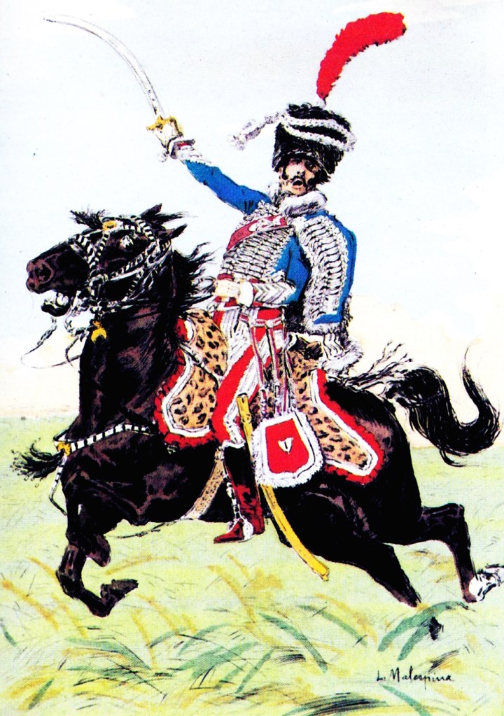 m – Par Louis-Ferdinand Malespina (1874-1940) — Eugène-Louis Bucquoy, « La Cavalerie légère », Jacques Grancher, coll. « Les uniformes du Premier Empire », 1980, 189 pages., Domaine public, https://commons.wikimedia.org/w/index.php?curid=38270925