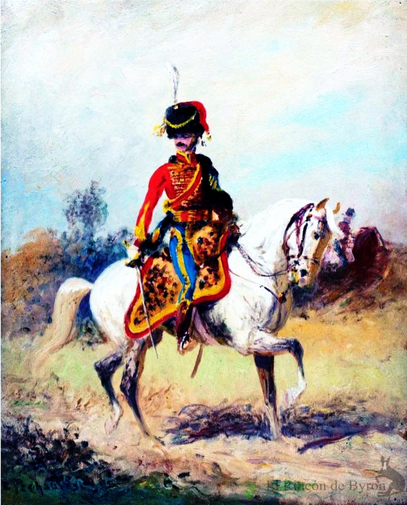 «Grupo de húsares», óleo sobre lienzo estampado, 46×32,5 cm (h)