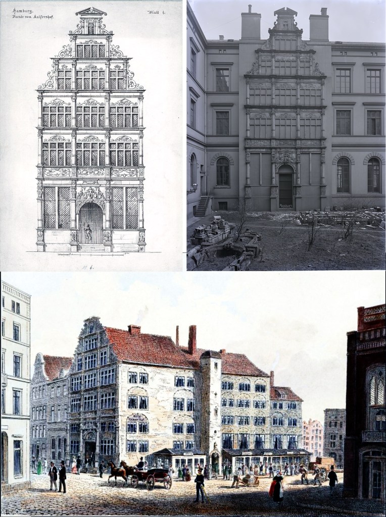 El antiguo Gasthof Kaisershof en Hamburgo, más tarde conocido como Hotel Kaisershof, fue construido inicialmente en 1619 como un palacio de clase alta. En 1726 la ciudad compró el edificio “para tener una posada elegante para huéspedes distinguidos”. El Kaisershof fue uno de los edificios privados renacentistas más importantes y, en ocasiones, uno de los principales hoteles de la ciudad hanseática. En 1873, el edificio fue demolido, después de quitar piedra a piedra el hastial de la fachada principal de piedra arenisca de puro estilo renacentista, con numerosas tallas de piedra e imágenes en relieve y reconstruirlo en el patio norte del Museo de Artes y Oficios de St. Georg, en el propio Hamburgo. [1]