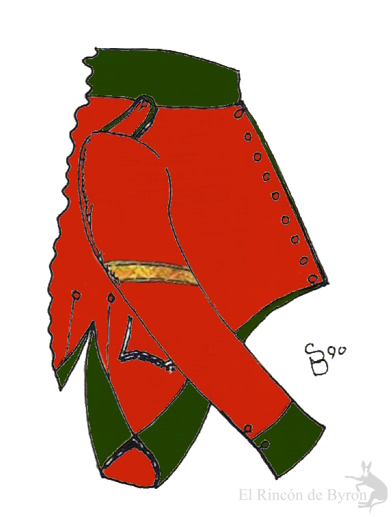 Ilustración II. Ejemplo de la casaca del modelo de la Ordenanza Kléber. La casaca de algodón de 1798 probablemente fuera, a menudo, similar. Extraído de Rigo.