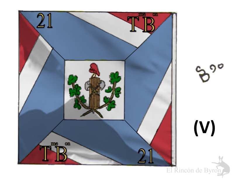 Sin embargo, el reverso de algunas banderas llevaban «Pre Bon«, «Dme Bon» o Tme Bon» en las esquinas superior derecha e inferior izquierda, con el número de Semi-brigada en las otras dos esquinas, pero esto NO era universal.