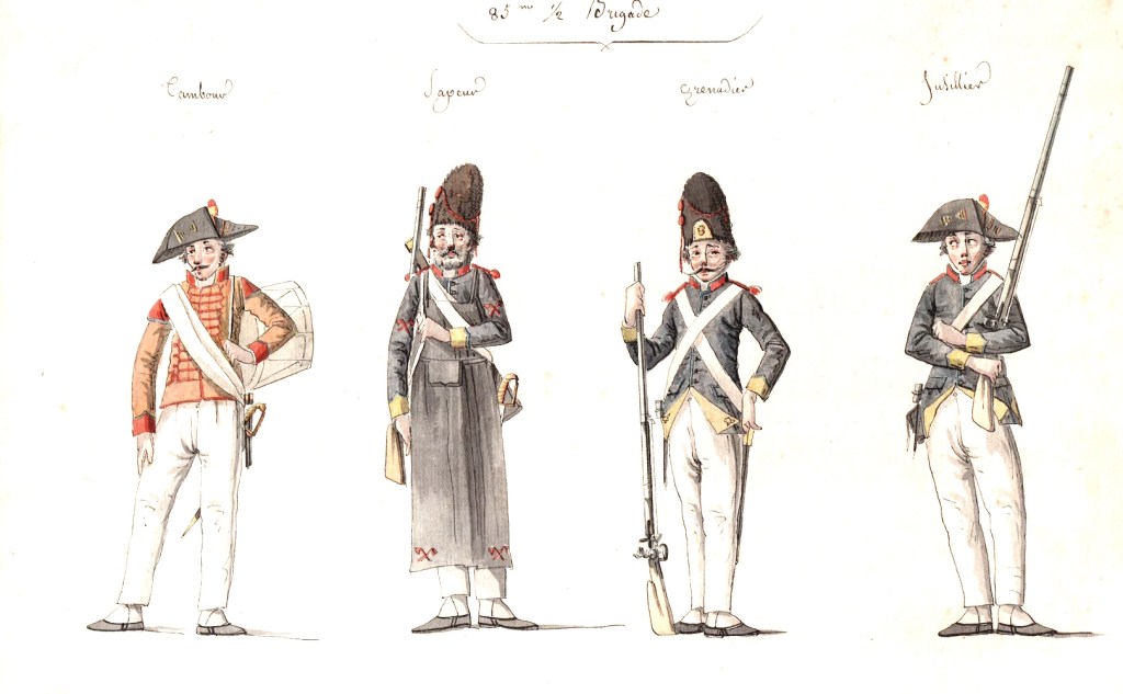 *Yves Martin nos hace una serie de aclaraciones en FB sobre los uniformes de dicho periodo: «Los uniformes de infantería que estás mostrando NO fueron adoptados a finales de 1798, sino a finales de 1799 y, en realidad, no se usaron hasta principios de 1800.»