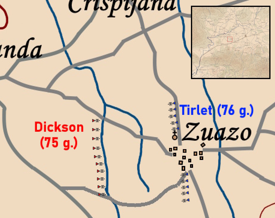 El teniente coronel Brook condujo a su batallón al lugar que aseguró un punto de apoyo a través del cual atacaron los otros batallones. Así que debe haber bajado a algún lugar cercano, asegurado esta parte exterior del pueblo mismo. Una vez que lo tengan, los dos batallones pasarán e intentarán avanzar a través de Gamarra Mayor. Un testigo de ello fue nuevamente nuestro viejo amigo Tomkinson, de quien acabamos de tener noticias. Dijo que:
