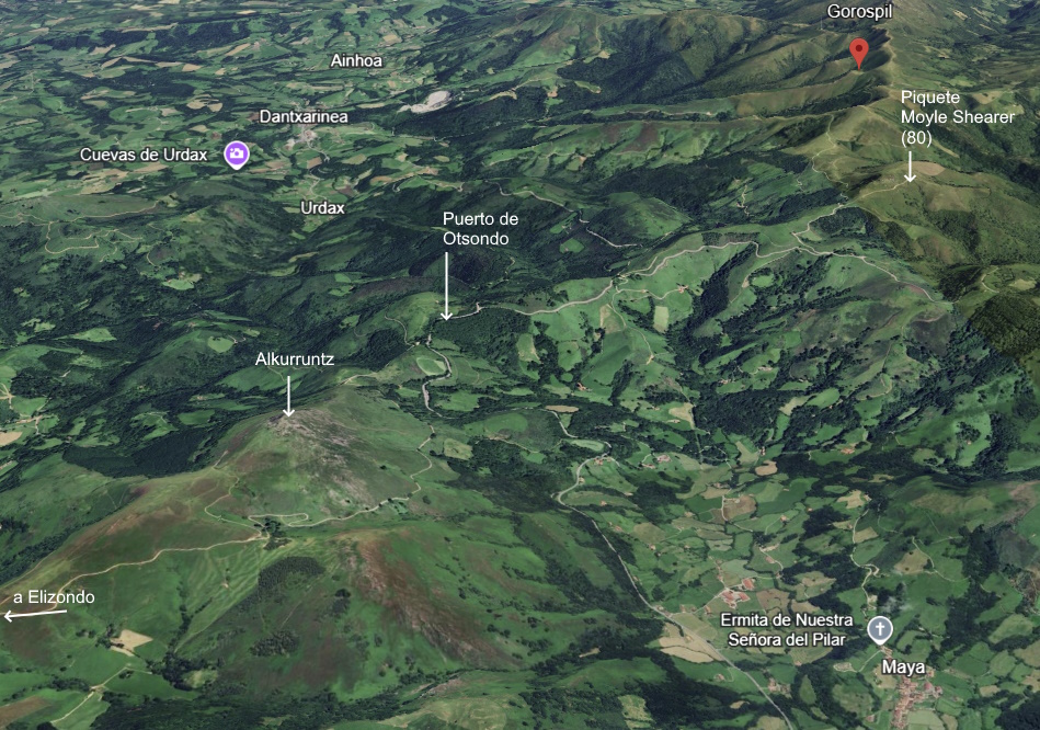 [Pregunta:] Vine aquí en un viaje anterior, y el guía dijo que todos los cañones, los cañones británicos estaban colocados encima de eso (el Collado de Maya o el actual Puerto de Otsondo, ver plano)…