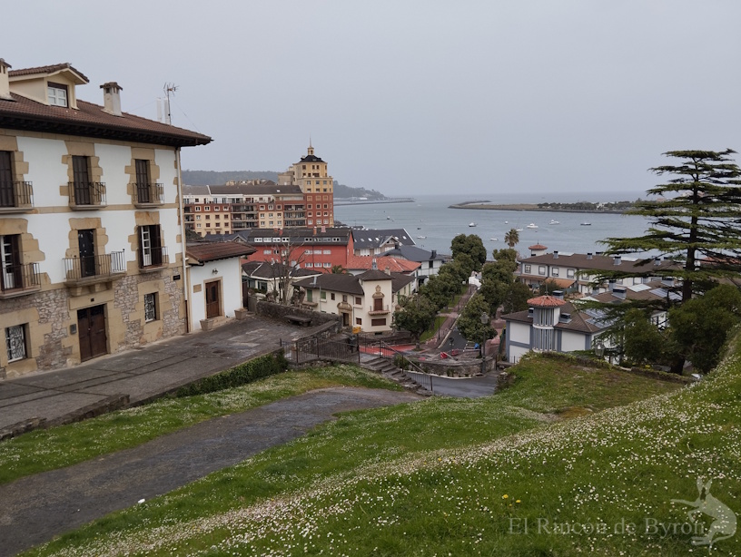 El gran Rhune (Larrún), ¿verdad? De hecho, lo es. Y del otro lado está Francia. Y la ciudad que se asienta debajo es la ciudad de Hendaya. Y eso se fusiona con otro pueblo llamado Behobia. Y todo esto es como una larga conurbación de principio a fin. Y llegas al desfiladero del área británica. Es muy abierto aquí, muy amplio. Pero una vez que superamos Behobia, que es nuestra segunda parada del día, empieza a fluir a través de un desfiladero muy estrecho. Hasta ese desfiladero, la conurbación está en ambos lados, por lo que se puede mantener este flujo de uno al otro. Entonces Fuenterrabía se transforma en La Rhune, La Rhune se transforma en Behobia. Yendo más arriba en la costa, está Saint-Jean-de-Luz, luego está Biarritz luego está Bayona. Entonces nuestra vista ayer habría sido cruzar esa costa de allí.