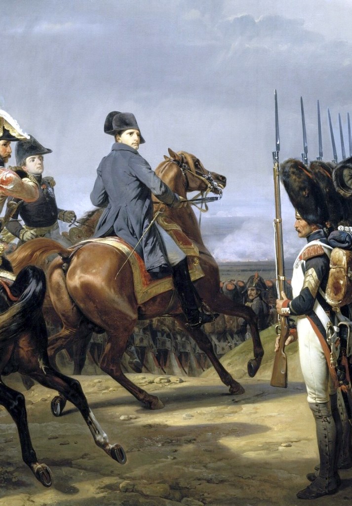 Detalle de un cuadro de Horace Vernet que muestra a Napoleón pasando revista a sus tropas tras la batalla de Jena, 1806. Este triunfo, en plena racha de victorias, sancionó la hegemonía militar de la Francia napoleónica sobre Prusia.