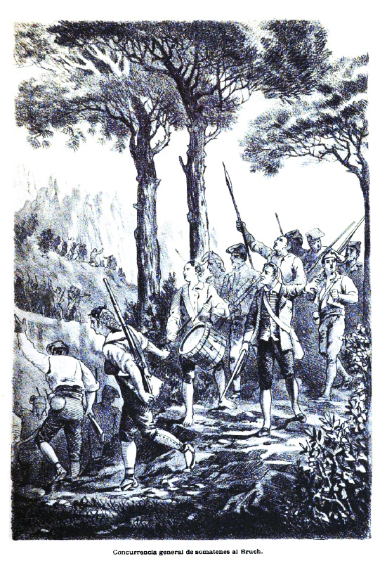 Llegado el somaten al Bruch de Dalt la mayor parte de los individuos que lo formaban pidieron de beber sin poder apagar su sed debido al cansancio, griteria y fragor de la lucha. A pocos momentos cundió la voz avanzaba camino y se preparaba para nueva acometida y D. Antonio Franch dejando el vaso que tenia en la mano subiose a una pequeña colina proxima y se convenció de que el rumor era infundado manifestandolo así a su gente.