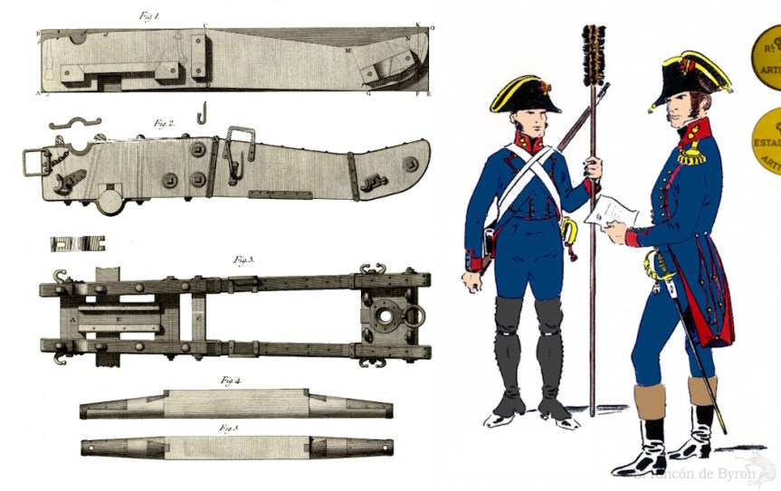 El material de que disponía el cuerpo en aquella fecha era muy numeroso y pertenecía en su mayor parte al modelo Gribeauval5 adoptado en 1792 y reformado en España.
