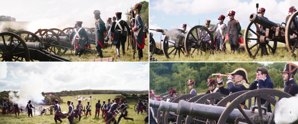 Neuville: «¿Lo que pasó en Essling? Era un día agradable. El Emperador venía de ganar 4 batallas en 5 días. Pero esa mañana, mientras cruzábamos el río, el puente se derrumbó bajo nosotros. Parte del ejército… se vio aislada, atrapada. Los austriacos instalaron su artillería y… el Emperador dio la orden a la caballería atacar. Nos lanzamos, orgullosos, inconscientes. Pero los cañones austriacos dispararon antes de que llegáramos a ellos. No sé cuánto tiempo duró la masacre. Una hora… Unos segundos… No lo recuerdo claramente. Un ruido ensordecedor. El suelo que explota. Jinetes lanzados al aire. La cabeza de Joubert arrancada por una bala de cañón, su cuerpo desarticulado continúa su loca carrera. Mi caballo tropieza y cae. Su sangre caliente me cubre la cara. A mi lado un hombre que contempla sus vísceras. Y otro hombre… cuyo brazo se sostiene por una vena. Eso. 300 hombres murieron así. Bajo un diluvio de fuego y acero. 300 cuerpos reventados y esparcidos por todo el campo. 300 vidas extinguidas, en un instante. General.«