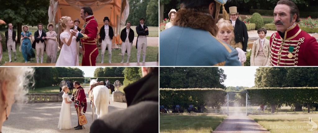 Por fin se celebra la boda entre Neuville y Elisabeth. Los nuevos marido y mujer se preparan para bailar rodeados de los invitados cuando acude un edecán que interrumpe la escena y reclama nuevamente al capitán Neuville para que vuelva a servir al Emperador en la nueva campaña que empieza. Se organiza una nueva comitiva de despedida frente a la mansión y Elisabeth se despide de Neuville, al igual que hiciera su hermana años atrás: